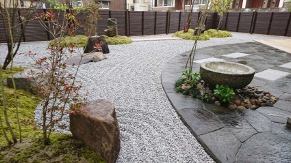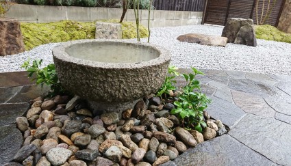 歴史を感がられる水鉢を現代風にアレンジしています。