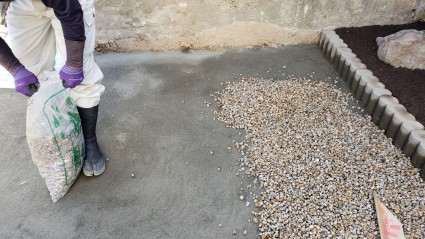 水はけのよい砂利敷の下部分はモルタル施工です。