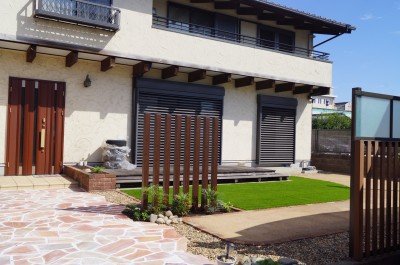 アプローチも石貼りになり庭が一気に明るい印象に!