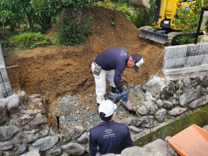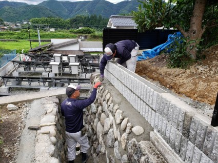 庭の石垣修繕工事|化粧ブロック積みなおし