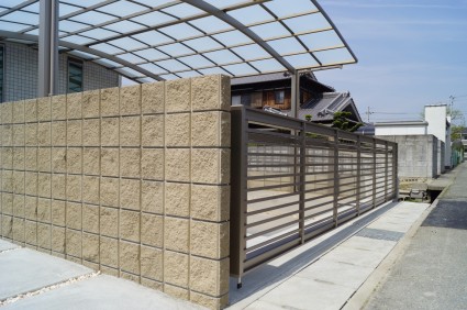 跳ね上げ門扉(オーバードア)のあるクローズ外構