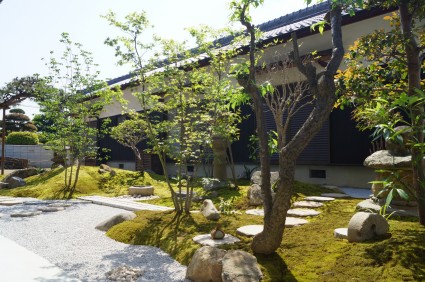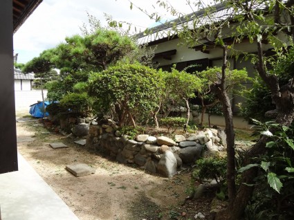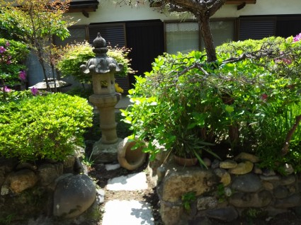 以前からあった庭石や灯篭、水鉢を再利用した事で
