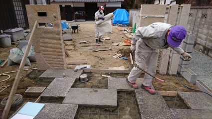 姫路市和風外構|オリジナルの石門柱と和風門扉のある門廻り