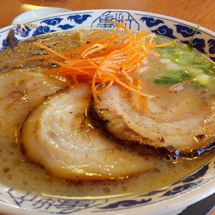 豚骨ベースのスープにチャーシューの脂身が
