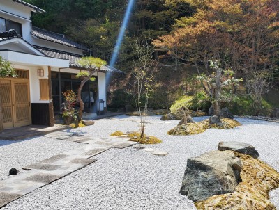 室内から眺めると、山も庭の一部として