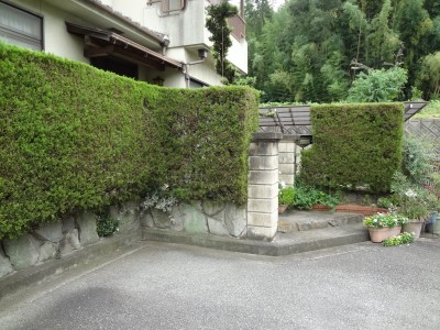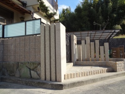 姫路市 生垣で困る門塀を御影石で統一した外構にリフォーム