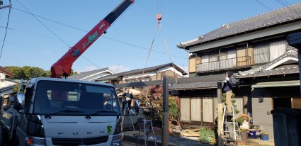大型梁をユニックで吊り作業でした。