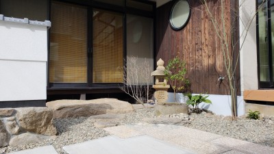 既存の灯篭や水鉢を据え直してスッキリと