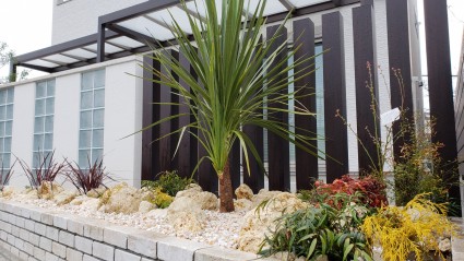 モダン系の外構を植栽と石を使って