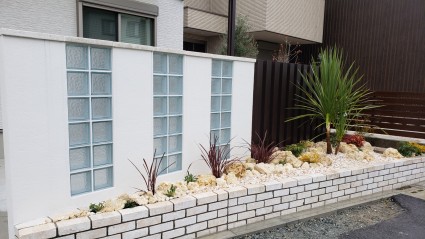 白煉瓦が可愛らしい花壇