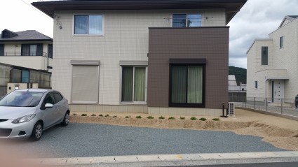 雨が続くと、庭部分のマサ土が駐車場や道路に