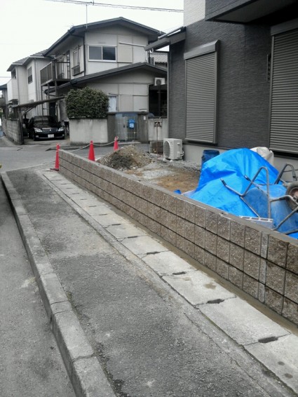 昨日は道路境界部分の化粧ブロック積み工事でした。