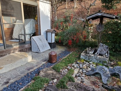 今回のお庭には既存の石や瓦や灯篭など多数あります。