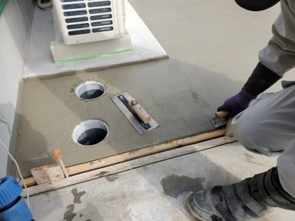 コンクリートが固まるまでコテで押さえていきます。