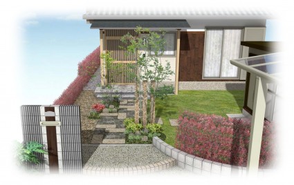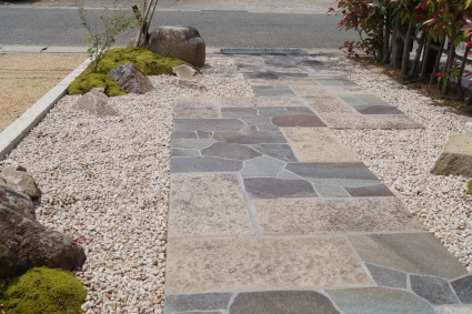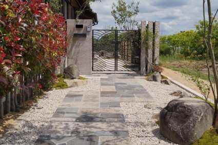 現代和風住宅のアプローチ|石貼りと板石の和モダンアプローチ