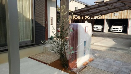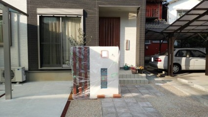 (天気がイマイチだったので塗り壁に養生シートをしております)