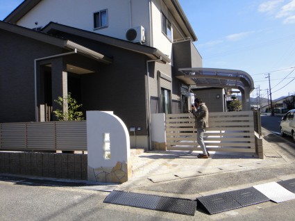 門柱足元にはマホニアコンフーサとオタフクナンテン