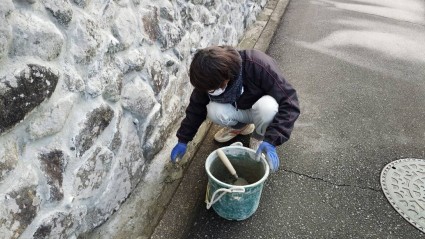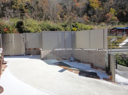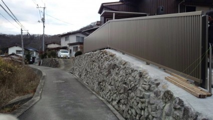 備前で石垣補修工事・フェンス工事中のO様邸。