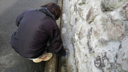 頑丈になった石垣の上に独立フェンスを取り付けていきました。