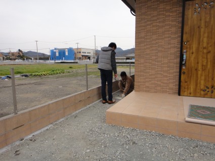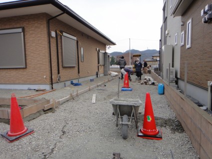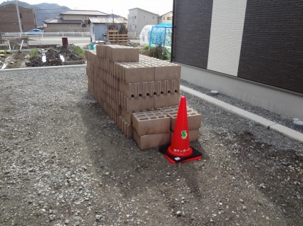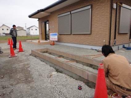 > 明るいカラーの境界ブロック積み工事 姫路市
