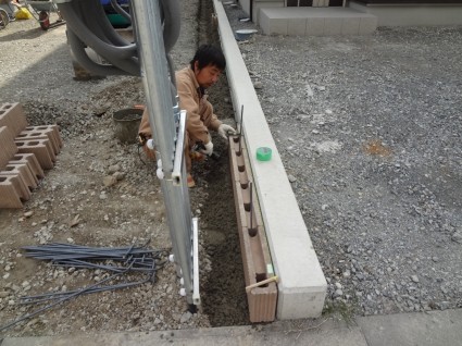 このブロックの上にはメッシュフェンスを取り付けていきます。