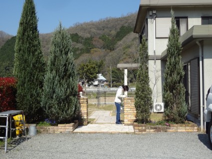 門前花壇に植えたゴールドクレストが大きくなりすぎ、ガーデンリフォームすることに。