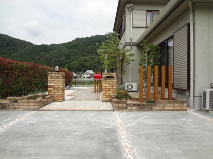 さて、佐用町W様邸にて、枕木風アルミ角柱を使ったガーデンリフォームのご紹介です。