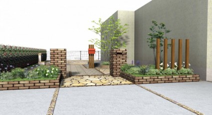 > 枕木風アルミ角柱を使ったガーデンリフォーム