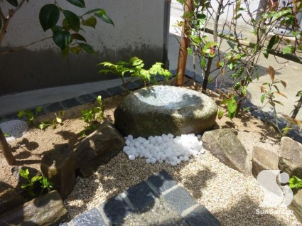 赤穂市T様邸にて、オリジナル水鉢を使った和のお庭のご紹介です。