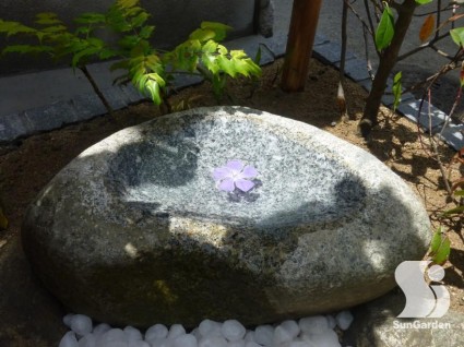 水鉢に水をため、花や葉っぱが落ちるとなんとも風情がありいいですね。