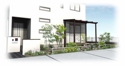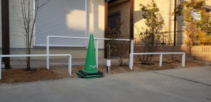 たつの市庭|駐車場と庭を仕切るフレームLIXILデザイナーズレール