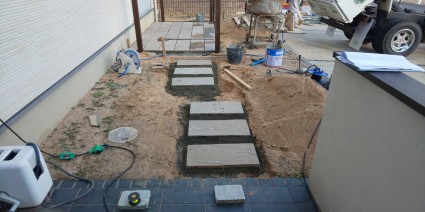 たつの市ガーデン工事|自然石貼りのガーデンテラス