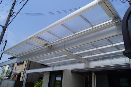 梅雨のお出かけもスムーズに出来る大型カーポート