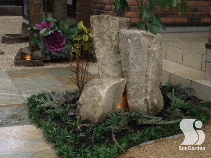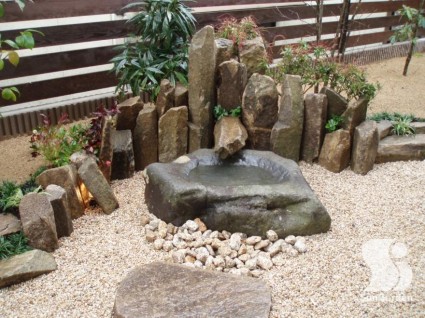 > 坪庭 六方石をアレンジしたつくばい 市川町