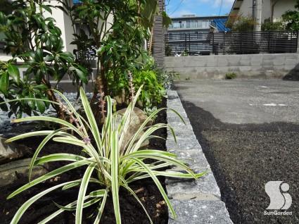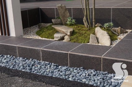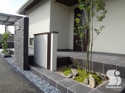 門の一角のスペースにアレンジした庭が作られることにより外構のイメージは変わります。