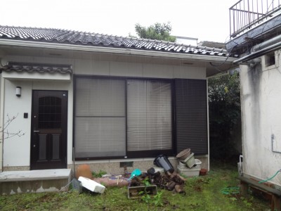 掃出し窓から庭へ出るのに新しく階段を作成。