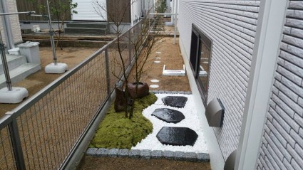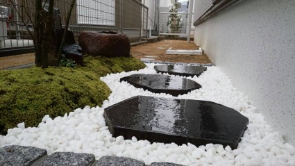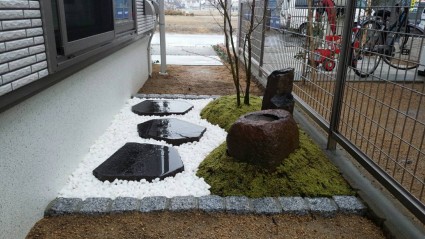 ピンコロ石で見切りをして苔でマウンドをつくりました。