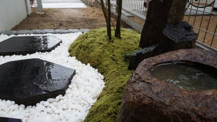 天然石の手水鉢で坪庭を素敵な坪庭に演出してくれます。