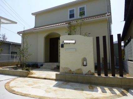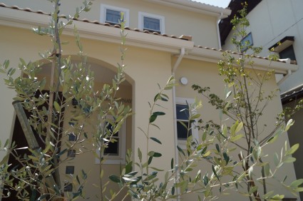 姫路市可愛らしいお家に似合う植栽オリーブの木とソヨゴ