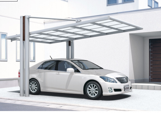 2本の柱とアームで屋根をしっかり支える上吊りタイプ。