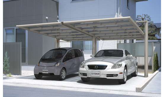 2本の柱とアームで屋根をしっかり支える上吊りタイプ。
