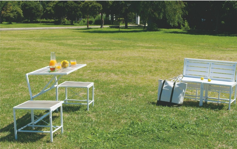 その名のとおり、手品のようにベンチがテーブル+チェアに早変わり。