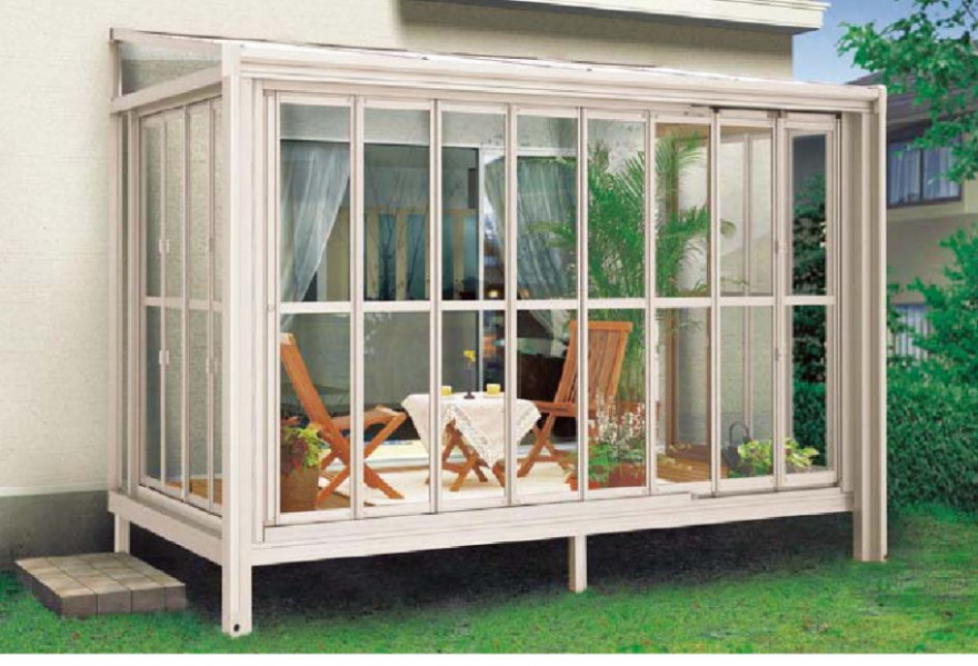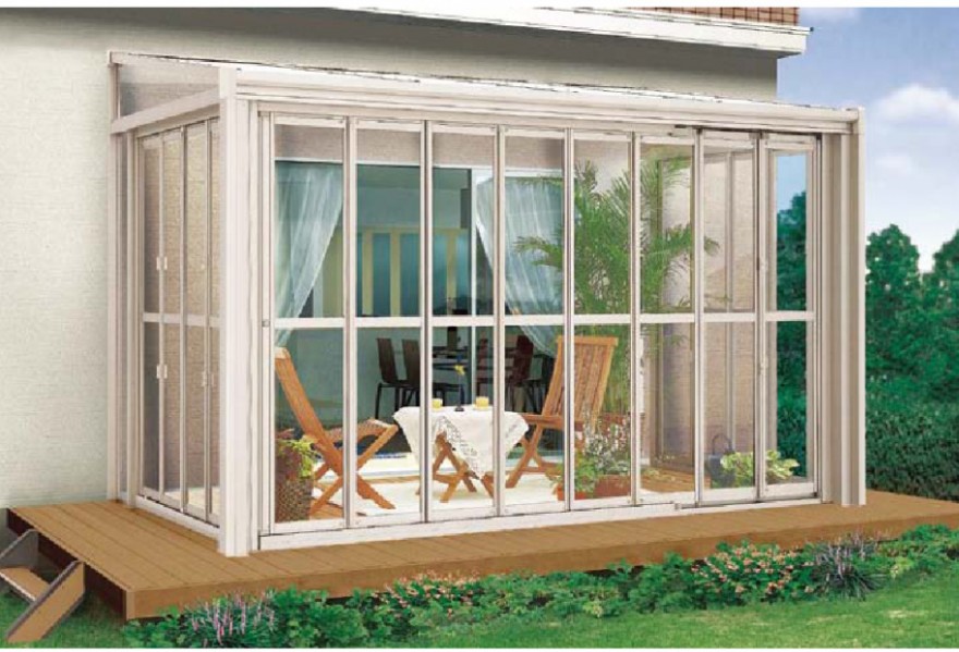 折戸パネルを開閉して、四季折々の自然の恵みを取り入れながら、部屋と庭の中間領域<ミッドテリア空間>を快適に活用できます。
