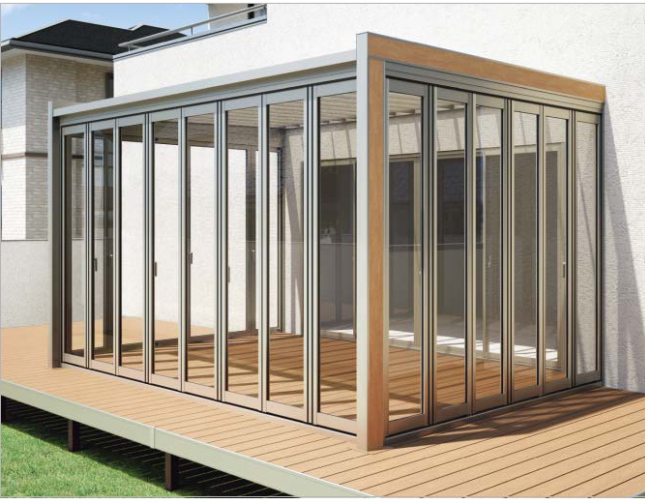 折りたたみ戸で屋根下全体を囲んだキューブタイプ。