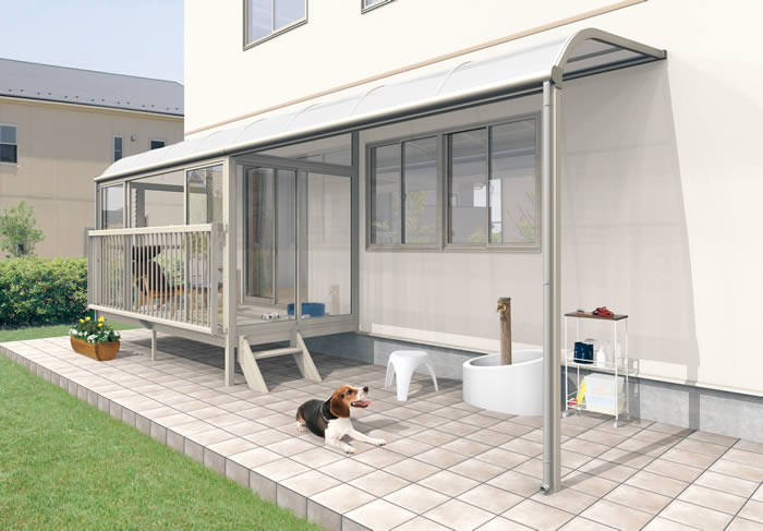 商品色:サンシルバー タイプ600タイプ/フラット屋根/土間仕様/木調枠