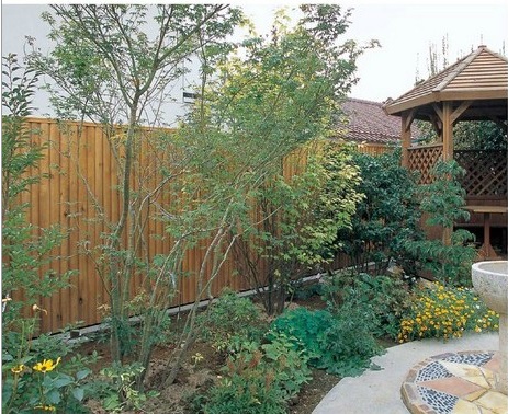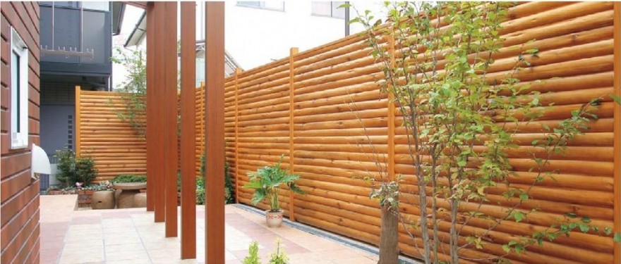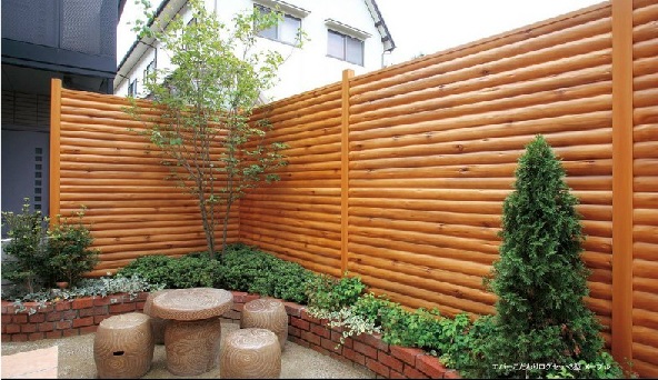 天然の丸太のような風合いが景観を損なわず、お庭の背景としてよくなじみます。