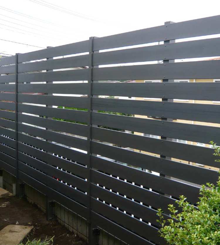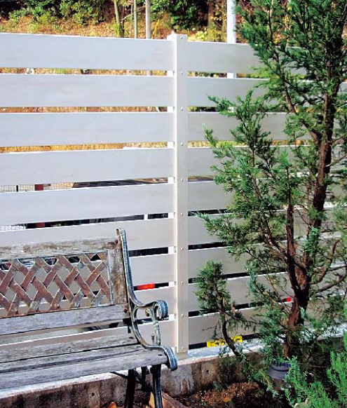 天然木材と同様に加工できますので、現場にてオリジナルフェンスを安価に制作することが可能です。