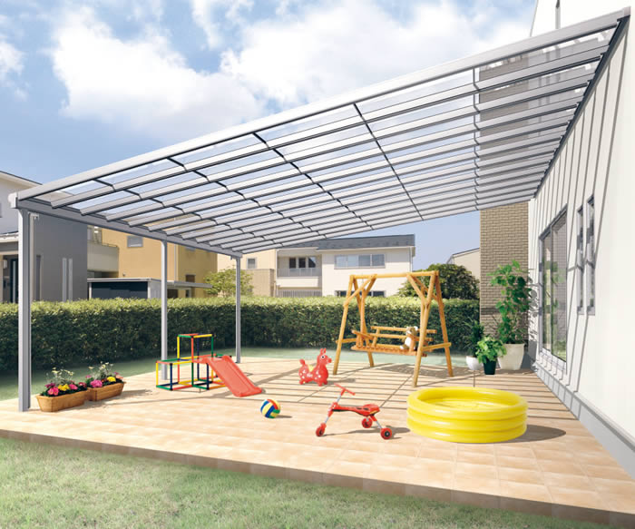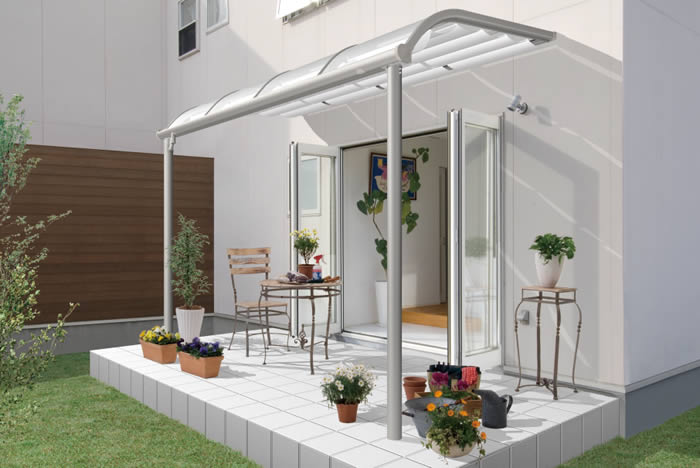商品色:サンシルバー タイプ600タイプ/1階設置型/標準納まり/アール屋根/丸柱