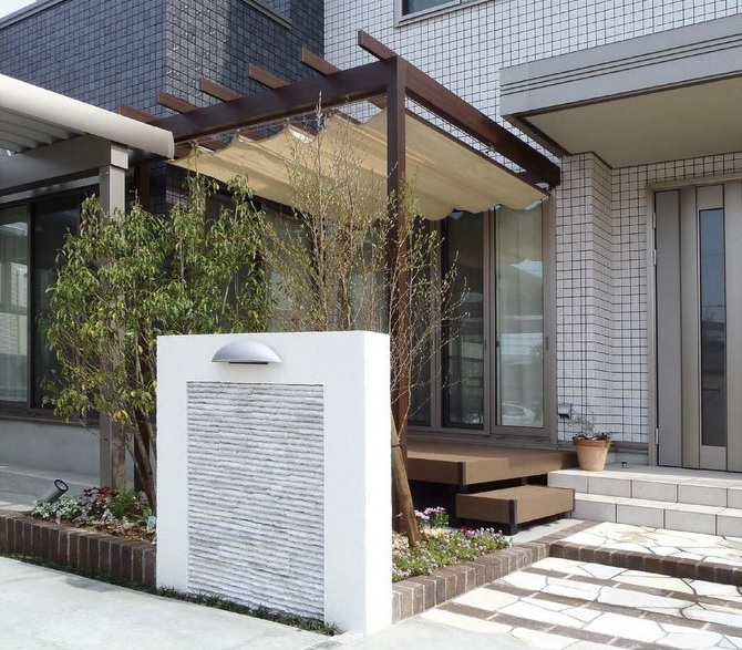 パーゴラ・ポーチ 壁付タイプ ダークパイン色