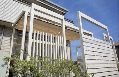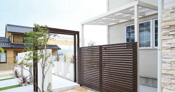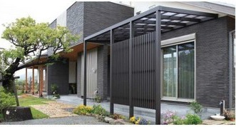垂木の張り出しをなくしたデザインが特徴のシンプル・ポーチ。
